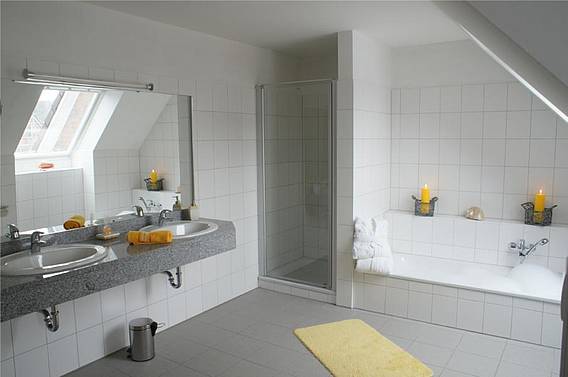• Bad mit Dusche und WC (Erdgeschoß), sowie Bad mit Badewanne/Dusche, WC, Haartrockner und Handtuchwärmer