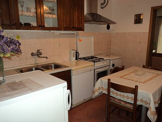There is living room with TV and access to the terrace, fully equipped kitchen, bathroom with bath tube.