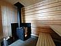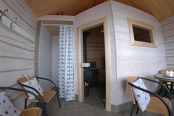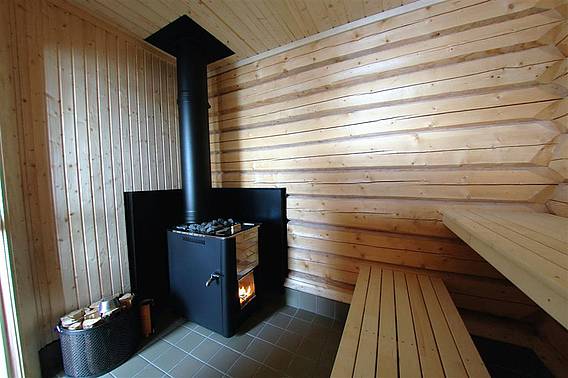 La nueva cabina de la sauna está a pocos metros del lago. La sauna se calienta con un horno de madera. Un gran ventanal al lago, ofrece una gran panorámica.