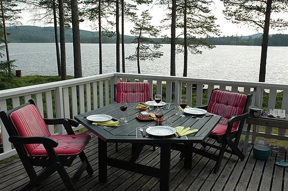 La gran terraza con orientación sur y ofrece una vista maravillosa sobre el lago y el hermoso campo de Dalarna. Desde la terraza, no se puede supervisar a los niños nadar.