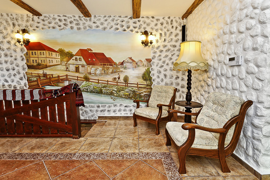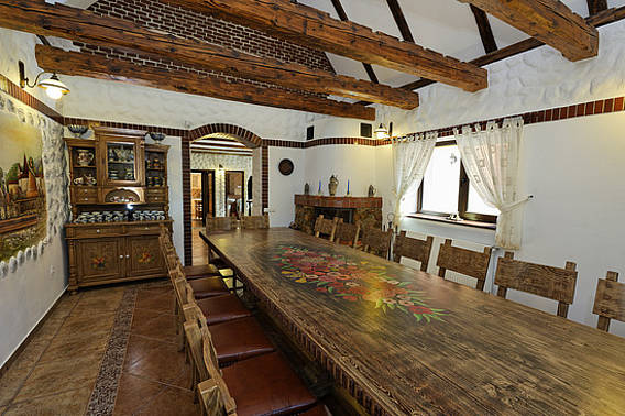 At the ground floor we have: BBQ, dancing floor / living / dinning with fireplace, LCD TV, DVD player, heated indoor swimming pool, sauna, jacuzzi, fully equipped kitchen. At the first floor we have a games room (snooker, table tennis), bar, LCD TV. All bedrooms are endowed with flat screen TVs and kingsize beds. Ideal for groups up to 12 persons. The recently restored private holiday Villa Ambient is a synonym for „treasure“. Tucked away in the heart of Cristian village, Ambient Villa 5* offers privacy and luxury with all the conveniences of a full service hotel. The magnificent villa was built over 2 centuries ago by the Saxons and it was fully restored in 2010.