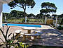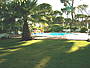 Blick auf die Poolterrasse und dahinter auf den Golfplatz.In der 15 qm großen Küche findet