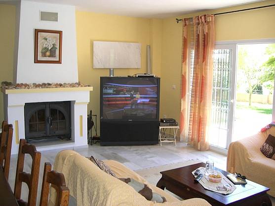 und ca.30 deutschen Kanälen). Das Wohnzimmer ist ca 50 qm groß, mit offenen Kachelkamin und