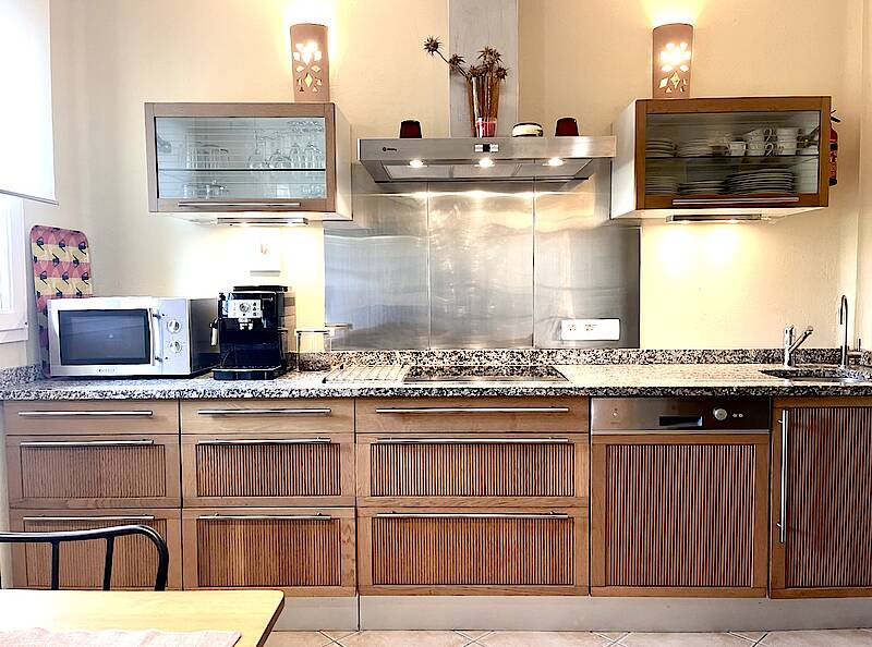 Las comodidades y de buena calidad incluyen wifi gratuito, aire acondicionado en la habitación y el salón, televisión por satélite, equipo de música, agua potable filtrada mediante un sistema de ósmosis inversa de alta calidad, cafetera automática DeLonghi, lavavajillas y lavadora. Dispone de barbacoa, mesa y sillas, tumbonas y un toldo en la terraza privada. En una propiedad independiente, a solo unos pasos, se encuentra nuestro espacioso complejo de piscinas para solo 7 casas. Podrá nadar en la piscina de 8x14 m, mientras que los 400 m² de terrazas le invitan a tomar el sol bajo las palmeras, y podrá navegar por internet gratis en la casa de la piscina de 50 m² con sombra.