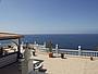 Terraza de 400m2 con solarium y vistas al mar con hamacas y sombrillas.