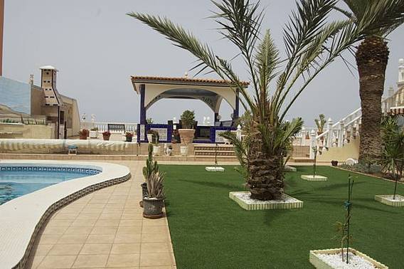 Piscina comunitaria con precioso jardín y con una pérgola al más puro estilo español y barbacoa.