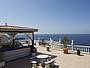 Terraza de 400m2 con solarium y vistas al mar con hamacas y sombrillas.