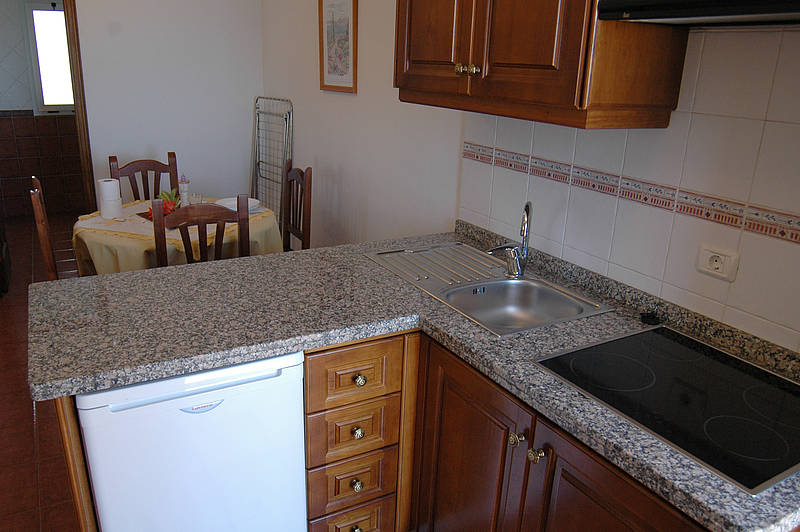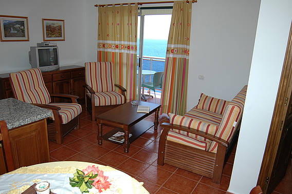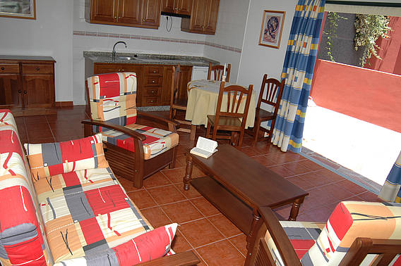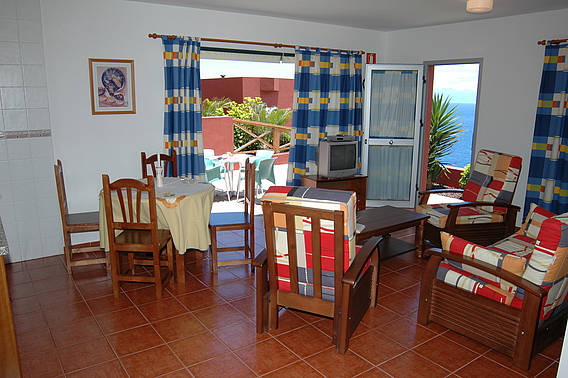 * 15 apartamentos, cada uno con una habitación con dos camas individuales, un cuarto de baño, un amplio salón comedor, equipado con mobiliario de calidad y TV (canales nacionales e internacionales). * Cada apartamento dispone de terraza individual con vista al mar y balcones desde donde se puede apreciar el Teide (parque nacional de Tenerife). * Cubertería, Cristalería, Batería de cocina, Vajilla completa, Cafetera eléctrica, Placa Vitro cerámica y Tostadoras * Cunas, Ropa de cama y Ropa de baño (toallas) * Lavadora al servicio del cliente. * 2 planchas de ropa al servicio del cliente. * 2 estufas al servicio del cliente * Exprimidor para zumos * Tendedera * El complejo dispone de piscina y todo el equipamiento necesario para pasar un rato confortable mientras toma el sol. Además también existe zona de aparcamiento para coches gratuita y privada.