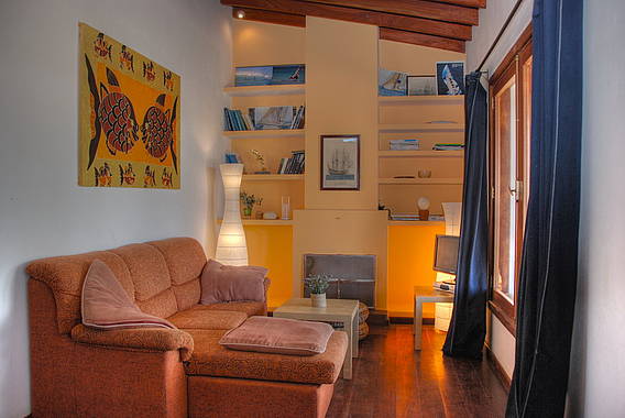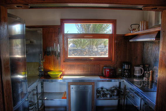 * La casa tiene aproximadamente 100 m2 construidos. Se compone de 2 dormitorios con dos camas individuales (juntas), cocina, sala de estar y un cuarto de baño con ducha. * La cocina cuenta con vitrocerámica, horno, congelador combinación-nevera, lavavajillas, cafetera y lavadora. * El salón se encuentra un cómodo sofá junto a un pequeño televisor LCD con receptor de satélite, reproductor de DVD y una radio CD. * La terraza con parte cubierta tiene vistas sobre el jardín y hacia el mar y desde aquí se puede disfrutar de románticas puestas de sol. * La casa cuenta con barbacoa junto al patio