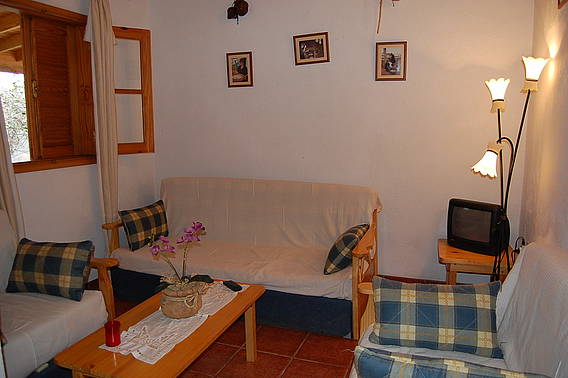 * La casa rural tiene 1 dormitorio con cama de matrimonio y otro con dos camas individuales. + sofá-cama. + cuna * Cocina separada, baño con bañera, menaje de hogar y lencería, televisión, lavadora, recipiente para recogida de aceite de consumo humano usado, calefactor, deshumuficador, botiquín, batidora y linterna * Mesa y silla de terraza de madera, placas solares y barbacoa
