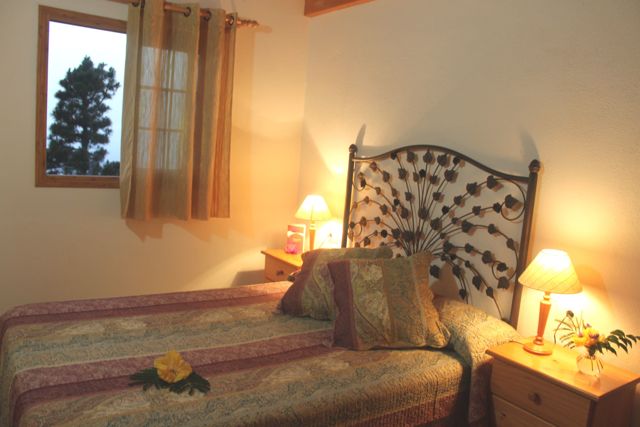 * 2 bedrooms: 1 with double bed of 1.35 x 1.90x and 1 with single beds of 0.9 x 1.90m.