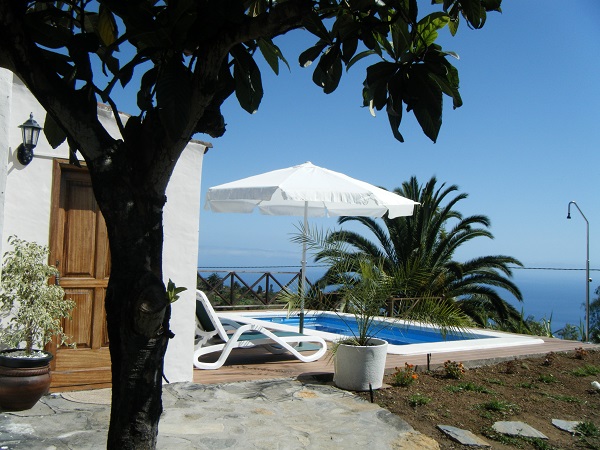 It enjoys splendid views over the mountains and the sea. The sunsets are spectacular. The cottage is very cozy surrounded by fruit trees and garden. It is 2 miles from town with available medical center, banks, civil guard, supermarkets.