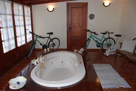 * Exterior: barbacoa, terraza con mobiliario y parking privado, jacuzzi, bicicletas de montaña y aparatos de gimnasia.