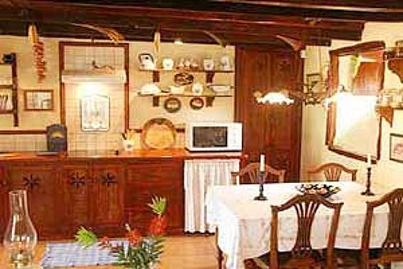 *La casa principal cuenta con un amplio salón, cocina y comedor. La cocina está completamente equipada con menaje de hogar completo, placa vitrocerámica de 4 fuegos, cafetera eléctrica y tostadora.