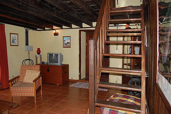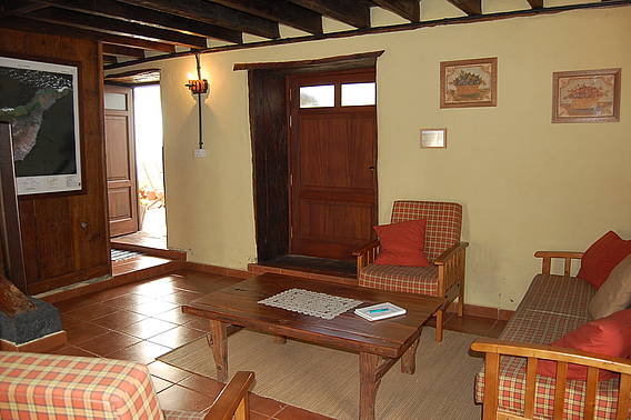 * Mobiliario de estilo rústico con antigos muebles canarios.