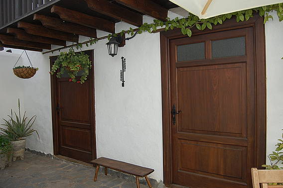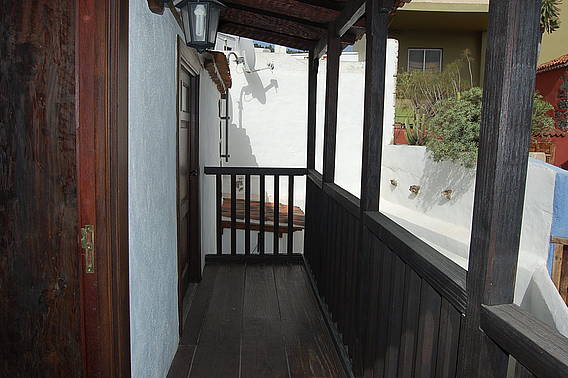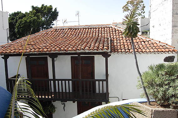 * Consta de 2 plantas: en la planta baja tiene una sala, baño con ducha, cocina-comedor completamente equipada y un pequeño patio. En la planta superior hay 2 amplios dormitorios y un antiguo y típico balcón canario de madera, accesible desde los dos dormitorios.
