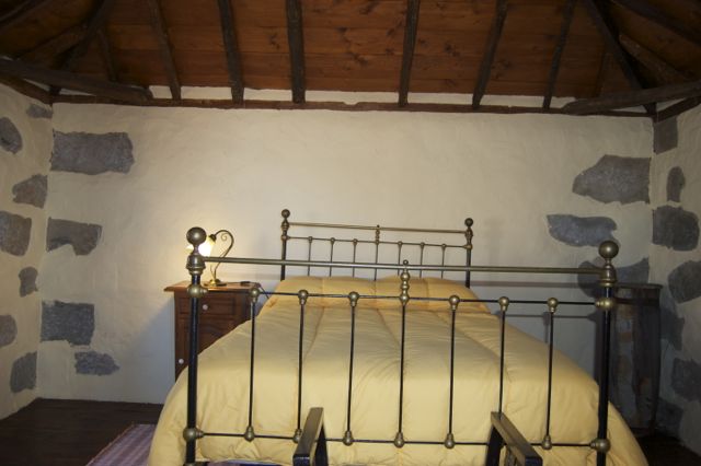 *1 habitación en la segunda planta con cama matrimonio (1,20m x 1,80 m) con suelo original de madera. Antiguamente era el almacén en dónde se guardaban las almendras.