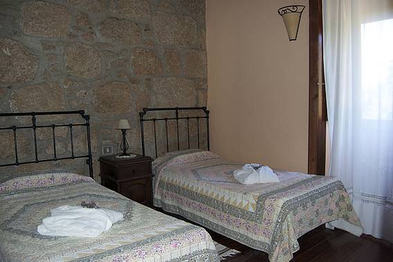 * Zonas comunes: un salón de lectura con estufa de leña, patios exteriores, piscina, solarium, jardines de flora autóctona, barbacoa y horno tradicional de leña.