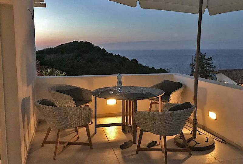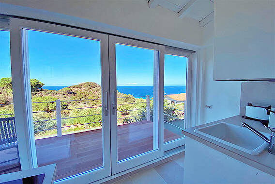Der erste Stock der Villa Bianca besitzt eine 60m² Wohnfläche für bis zu 4 Personen und hat eine herrliche Aussicht auf das Meer.