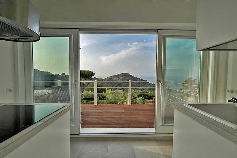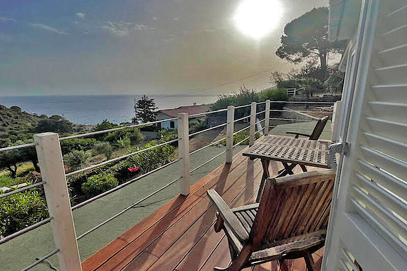 ist eine reizvolle Villa mit grossem Garten. Ein 50 m langer Fussweg von der Strassse die zum Strand führt (Sackgasse) zur Villa garantiert die ruhige Lage des Anwesens. Der Weg zum Strand betraegt zirka 5 bis 8 Minuten zu Fuss und geht ueber die antiken Treppen des Dorfes bergab. Die Villa ist aufgeteilt in zwei unabhängige entegegengesetzt liegende Wohnungen mit jeweils eigenem Eingang und eigenen Terrassen und privatem Garten. Der Privatparkplatz liegt zirka 400 m vom Haus entfernt.