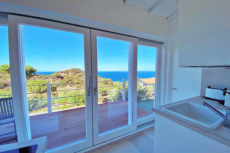 liegt im oberen Bereich der Villa. Durch zwei Glastüren gelangt man in den Wohn- und Schlafraum mit Schlafcouch und Badezimmer. Von dem gelangt man in eine kleine gut ausgestattete Küche mit traumhaftem Meerblick. Vom Wohnraum gelangt man durch eine grosse Schiebetür in das Schlafzimmer mit Doppelbett.