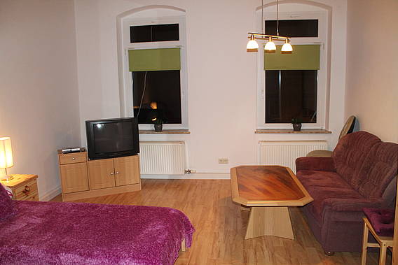 Das Appartement liegt zentral unweit der Innenstadt von Aue. Das hübsche und helle Appartement ist ca. 60 qm groß und teilt sich in Küche, Flur, Bad und zwei Zimmer mit Wohn-Schlafbereich auf. Die Küche ist voll ausgestattet und verfügt über eine Waschmaschine, Kühlschrank mit Gefrierfach, Mikrowelle, Kaffee-Maschine usw.