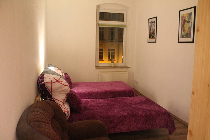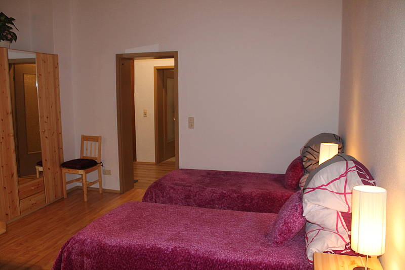 Hübsche preiswerte Ferienwohnung Das Appartement liegt zentral unweit der Innenstadt. Das helle Appartement ist 60 qm groß und ideal für vier Gäste. Eine neue Küche mit Eßecke, Bad, Flur und zwei Zimmer mit Wohn-Schlafbereich warten auf Sie.