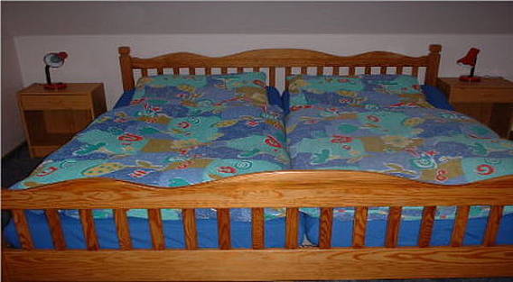 1 Schlafraum mit 1 Doppelbett (180 x 200cm) und 1 Kinderbett, Fernseher