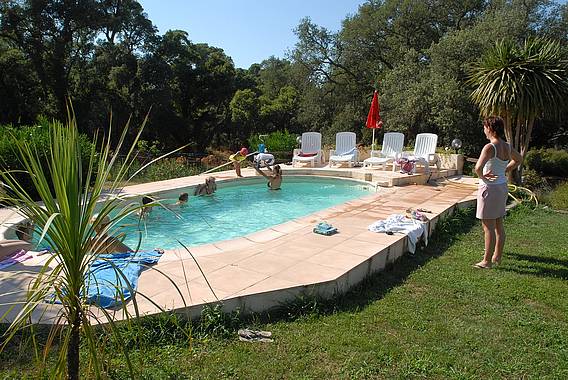Zwei typische korsische Häuser mit Gemeinschaftspool, sehr ruhig in einem großen Korkeichenwald, nicht weit vom Meer gelegen