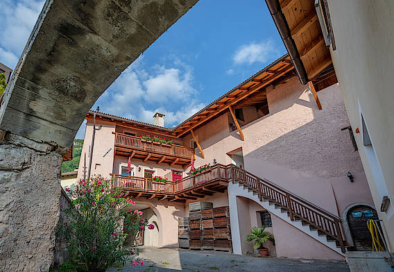 How to find us: Leave the Brenner motorway (A 22) exit “ Neumarkt-Tramin-Auer/Egna-Termeno-Ora” and follow the signs to “ Tramin/Termeno”. 200 m after the distillery “ Roner” you cross the Wine Street and follow the signs to “. Turismuszone Süd”. After 400 m you will see our pink coloured house on the right side.