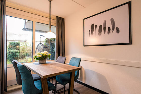 Die Ferienwohnungen sind hochwertig möbliert, selbstverständlich gehören auch ein Kinderbett und ein Kinderhochstuhl sowie Gartenmöbel, Grill und Internetanschluss zur Grundausstattung.
