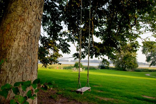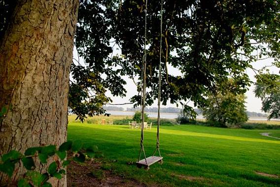 Direkt am Wasser liegender 10.000 qm-großer Garten bietet Sonn- und Ruhemöglichkeiten und viel Raum für spielende Kinder