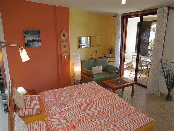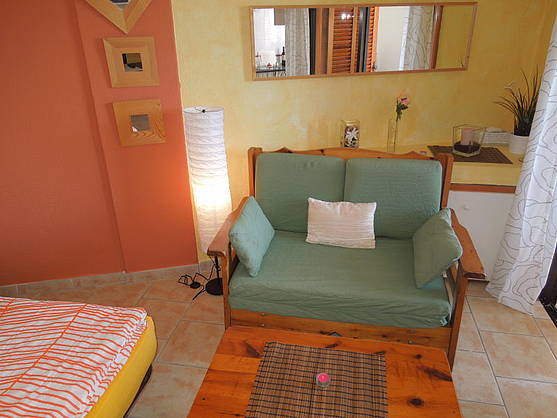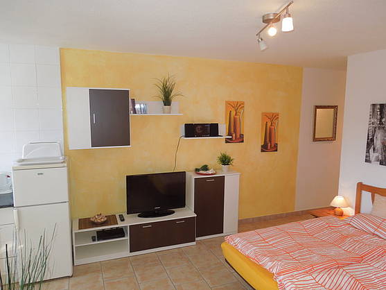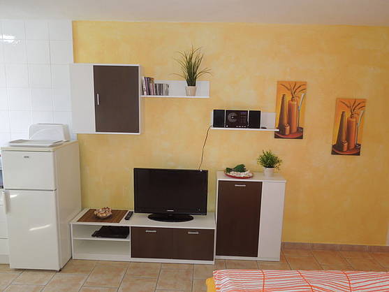 Das Studio besteht aus einem kombinierten Wohn- und Schlafraum, der ganz neu eingerichtet wurde. Die Küche verfügt über ein Cerankochfeld, eine Mikrowelle, sowie Toaster, Wasserkocher und eine Kaffeemaschine. Alles, was man zum wohlfühlen braucht, ist vorhanden. Ein Flachbildfernseher und eine kleine Stereoanlage sorgen für Unterhaltung.