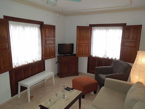 Im großen gemütlichen Wohnzimmer mit es einen Fernseher mit deutschsprachigen Programmen über Satellit.