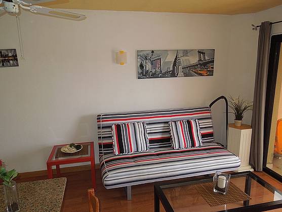 Aber auch die Ausstattung des Apartments hat viele Highlights: Das gemütliche Wohnzimmer bietet ein Schlafsofa (Schlafgelegenheit für eine dritte oder vierte Person), einen Flachbild-Fernseher mit Satellitenprogrammen. Internet steht über WLAN kostenfrei zur Verfügung. Die offene Wohnküche ist ausgestattet mit Cerankochfeld, Backofen, Kühl- Gefrierschrank, Mikrowelle, Toaster, Kaffeemaschine und Wasserkocher. Sie können dort einen unbeschwerten Urlaub genießen - egal, ob Sie gerne kochen oder lieber zum Essen in eines der zahlreichen Restaurants gehen möchten.