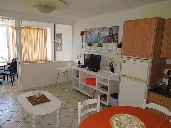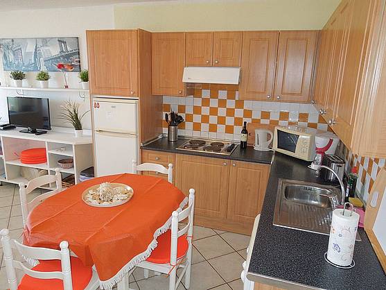 Eine Sitzecke für ein 'schnelles' Frühstück befindet sich in der Küche, eine weitere Sitzecke ist auf dem Balkon.