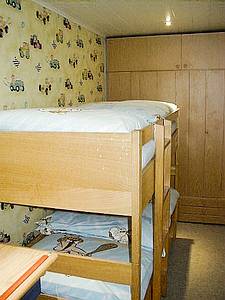 Kinderzimmer: Doppelstockbett, Wäsche- Kleiderschrank mit Bügeln, Spieltisch mit Sitz; Küche: Kühlschrank, Kochplatte, Spüle, Tisch, 4 Stühle, elektrische Geräte, notwendiges Geschirr, Besteck und Hilfsmittel;