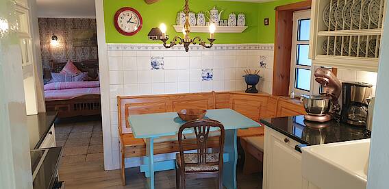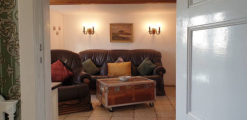 Unsere Fischerkate bietet 2 Schlafzimmer für max. 4 Personen, eine gemütliche Wohnstube mit Ledergarnitur und Kaminofen, komplett ausgestattete Küche mit Sitzecke, Bad mit Badewanne und bodengleicher Dusche, Diele mit Hundebett und Hundebar. Der große eingewachsene Garten mit Terrasse, Rasenfläche, Gartenmöbeln und Strandkorb ist komplett eingezäunt.