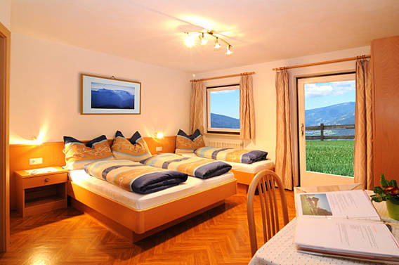 Fünf Zimmer und eine Ferienwohnung verfügen über Dusche/WC, Sat-TV, einen Südbalkon bzw. über einen direkten Zugang zur eigenen abgegrenzten kleinen Südterrasse mit kleinem Gartenanteil und einem wundervollen Blick auf Brixen.