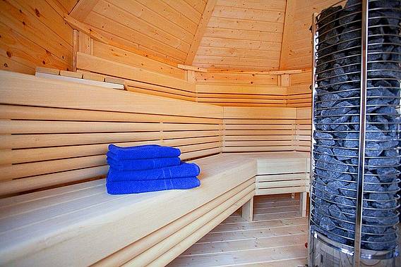 Nach anstrengenden Ausflügen genießen Sie die Außensauna (mit Platz für bis zu acht Personen) und relaxen im Whirlpool.