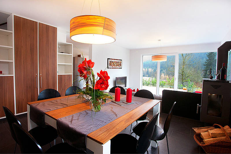 Das luxuriöse Ferienhaus mit Sauna und Whirlpool und großem Garten knüpft in moderner Interpretation an die Tradition des Schwarzwälder Hauses, wie es im nördlichen Teil dieser Ferienlandschaft zu finden war, an. Ein lang gestrecktes, puristisches Gebäude, ohne Dachvorsprung und Schnörkel.