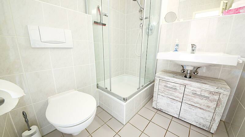 - modernes Bad mit Fenster, Echtglasduschkabine/WC und Handtuchtrocknerheizkörper