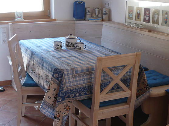 Es verfügt über einen offenen Wohn-Küchenbereich, in dem ein Kamin für wohliges Ambiente sorgt. Sie bewohnen die gesamte li. Doppelhaushälfte, mit eigenen Terrassen und Balkon. Im OG befinden sich zwei separate Schlafzimmer (eines mit Himmelbett), sowie ein geräumiges Bad mit Badewannen-Duschkombination. Das DG ist zu einer Schlafempore ausgebaut. Im EG ist ein zusätzliches WC vorhanden.