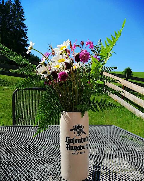 Unser Ferienhaus im alpenländischen Stil liegt in ruhiger Waldrandlage oberhalb des Lechbrucker See.