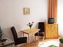 Die im März 2009 neu eingerichteten 1- und 2-Raum Apartments sind hell, freundlich und trotz der zentralen Lage ruhig. In nur wenigen Minuten erreichen Sie fußläufig alle berühmten Sehenswürdigkeiten der Stadt wie den Gendarmenmarkt, das Brandenburger Tor, den Reichstag, den Potsdamer Platz, den Alexanderplatz, die Museumsinsel und das Checkpoint Charlie Museum. Die Betten der Apartments können auch auseinander gestellt werden. Zur Ausstattung gehören Kabel-TV, Weckradio, teilweise Internetzugang, eine Einbauküche mit Kühlschrank, Kochfeld, Toaster, Wasserkocher und Kaffeemaschine. In der DU/WC befindet sich ein Fön. Handtücher und Bettwäsche sowie der regelmäßige Reinigungs- und Handtuchwechsel sind im Preis enthalten. Sie erhalten für die Zeit Ihres Aufenthaltes kostenlos eine Parkvignette (Der Normalpreis beträgt 2,- €/Stunde). Wir freuen uns, Sie bei uns zu begrüßen.