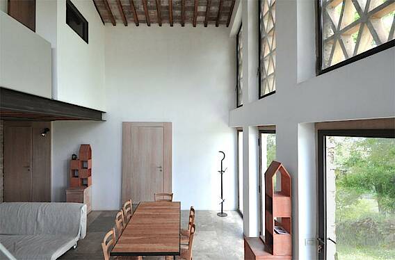 Poggio al Leccio1 für 6 Personen ( 130 qm² ). Das Haus besitzt einen Gartenbereich mit einem Rosengarten und einem Fußballfeld. Es wurde vor kurzem komplett renoviert, ohne den historischen Charakter des Gebäudes zu beeinträchtigen. Das Gebäude ist geschmackvoll eingerichtet, es verfügt über eine Heizung, Sat Tv, ein Babybett und einer gemeinsamen Waschmaschine. Der Außenbereich und die Terrasse besteht aus Terrakotafliesen und bietet einen Blick auf die Türme der mittelalterlichen Festung von San Gimignano. Das Gebäude hat eine 130 qm² große Wohnfläche über zwei Ebenen mit einem Open-Space. Der 40 qm² und 7 m hohe Raum beinhaltet eineSofaecke, Kamin und Speisebereich, welche mit einer schönen Steinküche verbunden ist. Im Erdgeschoss befindet sich ein Doppelschlafzimmer, mit Zugang zur Terrasse, und ein Bad. Das Obergeschoss hat ein Doppelzimmer und ein Zweibettzimmer, sowie ein Badezimmer mit Dusche.
