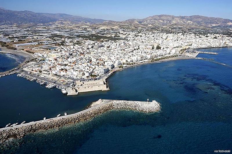 Flight to Heraklion North of Crete, then with rented car, Taxi or public bus to the South Coast to Ierapetra