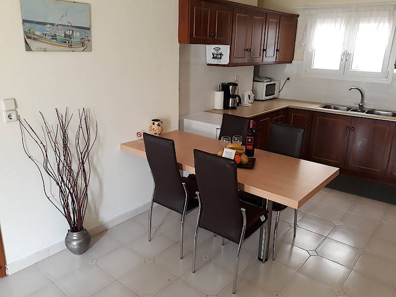 2 bedrooms, WC with bath and shower, fully equipped kitchen with cooking opportunity, Fridge/ Deep-freezer- Compination, small washing machine, TV and DVD Player,backyard with storeroom, in the first floor. Child-friendly. For 2 - 4 persons, least rent duration 1 week.