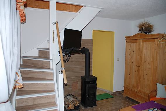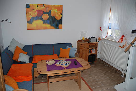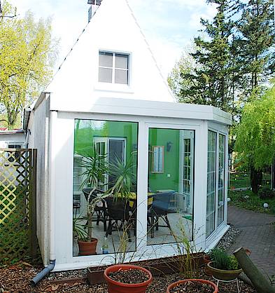 Unser Nichtraucher-Ferienhaus ist für 2 Personen ausgelegt. Es ist etwa 62 qm groß, mit Wintergarten, vollausgestatteter Küche, Badezimmer mit Du/WC, Wohnzimmer mit Eckcouch, Kaminofen, TV/Radio. Im Spitzboden, erreichbar über die Holzwendeltreppe, befindet sich das Schlafzimmer. Das Ferienhaus ist mit vielen Annehmlichkeiten ausgestattet und mit Dekorationen liebevoll eingerichtet. Der Eingang erfolgt über den Wintergarten, dieser ist maigrün und der ideale Essbereich, die Küche ist safrangelb, das Wohnzimmer ist weiß (Foto wird noch ergänzt) und der Spitzboden ist in himmelblau gestaltet, daher der Name Puppenstube. Haustiere sind nicht gestattet .