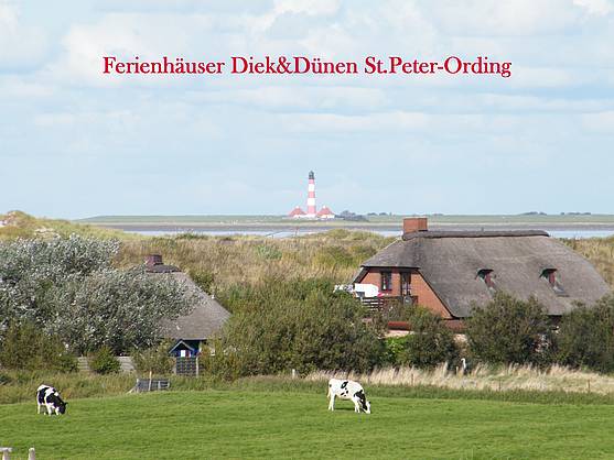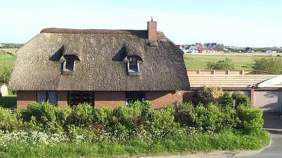 Unser großes Reetdachferienhaus Strandperle mit 4 Schlafzimmern für 8 Personen liegt direkt am Sandstrand / Deich in St. Peter-Ording.